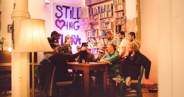 Seit gut einem Jahr wohnen sie an der Mokrystraße. Sven-Jan Schmitz, freischaffender Pädagoge und Künstler, ist Bewohner der ersten Stunde. Ihm ist es wichtig, dass die „Mokry“ nicht nur als Wohnhaus wahrgenommen wird: „Das ehemalige Ladenlokal im Erdgeschoss ist öffentlicher Raum und nichtkommerzieller Kulturort“. Dort trifft man sich, isst zusammen, hört Musik oder spielt. Die „Soli-Abende“ am Freitag sind das Herzstück. Die dort generierten Gelder gehen an verschiedene Initiativen und Vereine, aber auch an Menschen in individuellen Notlagen. Generell gilt, dass in den Räumlichkeiten nichts gekauft, sondern nur gespendet werden kann.