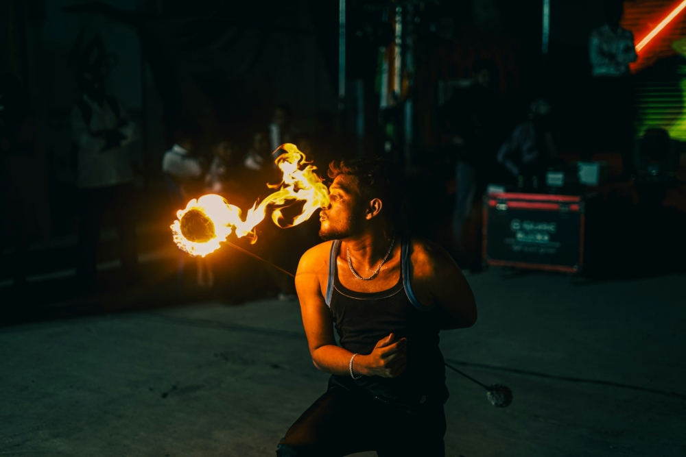 Brennende Leidenschaft kommt in doppelter Ausführung, wenn das Brautpaar sich für das Showhighlight Feuerkünstler entscheidet. Präziser akrobatischer Feuertanz mit Fackeln in den Händen: Eine stilvolle Choreografie, gekonntes Handtieren mit den großen entfachten Flammen und eine ordentliche Portion Magie sorgen für angehaltenen Atem bei den Hochzeitsgästen.