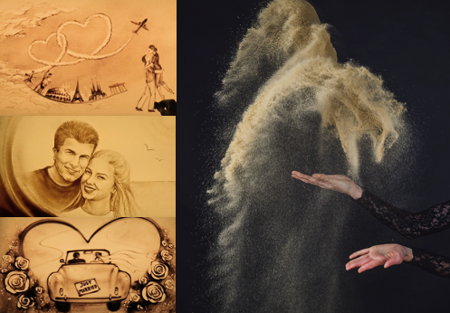 Von der ersten Begegnung bis zum Jawort: Die Geschichte des Hochzeitspaares, mit emotionaler Musik untermalt, live gezeichnet in Sand und auf einem Projektor für die gesamte Hochzeitsgesellschaft übertragen. Ein tief berührendes, wunderschönes Live-Kunstwerk für Hochzeiten. Die Kombination aus visueller Erzählung, atmosphärischem Soundtrack und der besonderen, meditativen Ästhetik des Sandes schafft einen Gänsehautmoment, der lange in Erinnerung bleibt. Alternativ werden auch individuelle sowie vorgefertigte Sand-Malerei-Videos angeboten. Die Sandmalerei lässt sich individuell auf das Paar abstimmen und wird so zu einem einmaligen Highlight des Hochzeitstages.