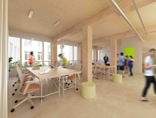 Der Bauplan umfasst einen Dachgarten, eine begrünte Fassade, Gemeinschaftsflächen, Workshop- und Besprechungsräume, flexible Arbeitsplätze sowie separate Büros. Im Mittelpunkt des Projekts stehen eine nachhaltige Bauweise und ein Modell, das die Nutzerinnen und Nutzer aktiv in die Gestaltung einbindet. Ziel ist es, dass der Holzbau sowohl funktionaler Arbeitsplatz als auch lebendiger Treffpunkt für Kreative, soziale Initiativen, Unternehmen und die Nachbarschaft wird.