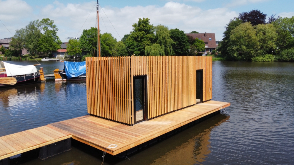Wenn Entspannung, Natur und Design vereint sind: die schwimmende Sauna von AHOI liegt im Holzhafen von Stade – knapp eine Stunde von Hamburg, ist Ruhe, Natur und ein außergewöhnliches Erlebnis entfernt. Mit Panoramablick vom Wasser aufs Wasser und Abkühlung direkt vom Steg kann man die Zeit perfekt mit Freunden und seiner oder seinem Liebsten verbringen.