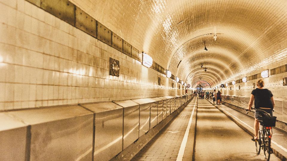 Gerade in der Sommerhitze ist ein Spaziergang durch den kühlen Elbtunnel eine willkommene Abwechslung. Der historische Tunnel verbindet die Landungsbrücken mit Steinwerder und lässt sich in etwa 40 Minuten zu Fuß durchqueren. Am Wochenende ist er komplett autofrei und ausschließlich für Radfahrerinnen, Radfahrer und Fußgängerinnen und Fußgänger geöffnet. Unterwegs lohnt sich ein Blick auf die beeindruckende Architektur: Der alte Bau mit seinem maritimen Stil versetzt Besucherinnen und Besucher zurück ins frühe 20. Jahrhundert.