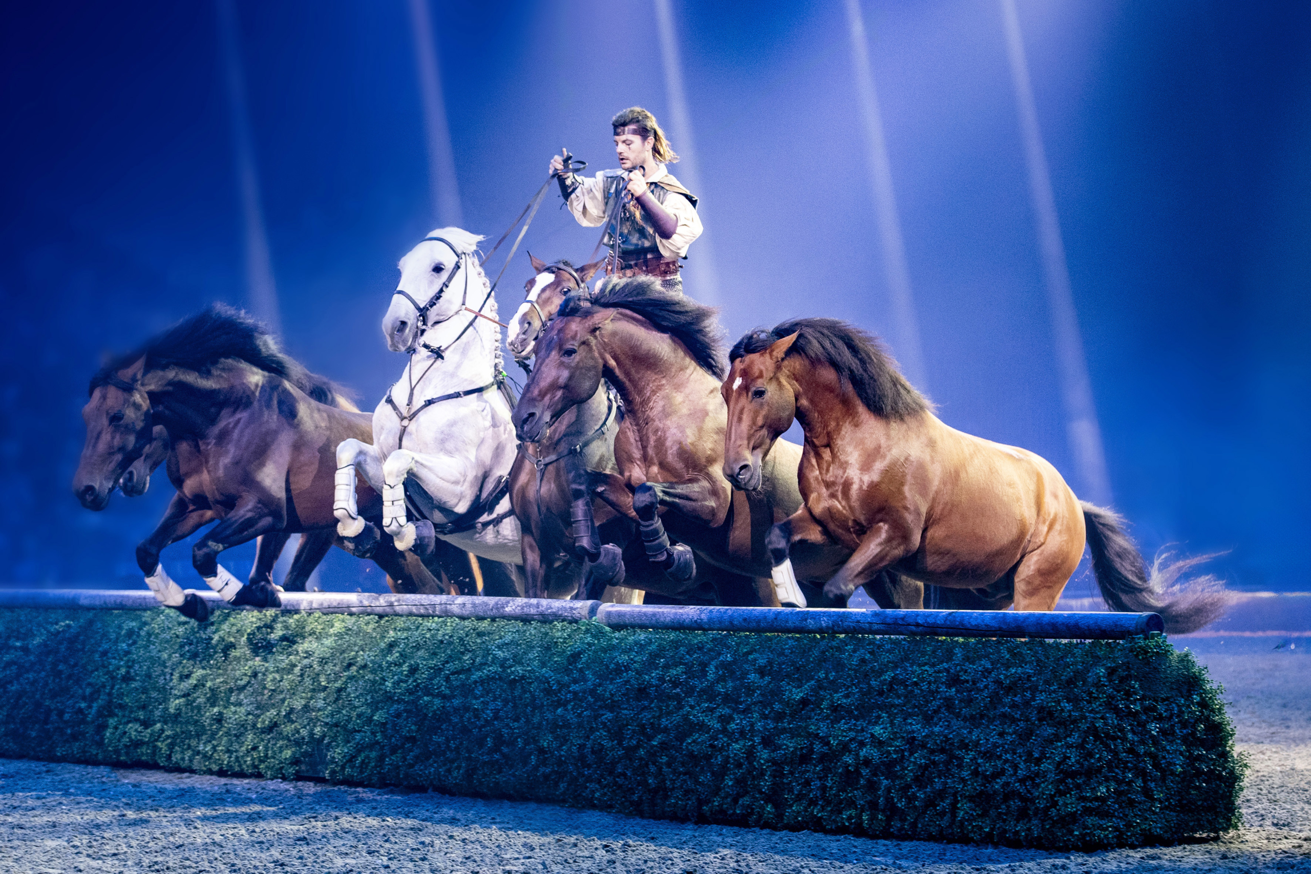 Cavalluna präsentiert eine spektakuläre Show, die das Publikum in geheimnisvolle Welten eintauchen lässt und eine magisch-fantastische Geschichte erzählt. Die Gäste dürfen sich auf grandiose Showeffekte und 56 wunderschöne Pferde freuen. Erzählt wird das Abenteuer der jungen Zauberin Meerin, die sich auf eine spannende Reise in ein fernes Land begibt und dabei in die Fänge eines heimtückischen Hexenmeisters gerät. Um ihre Magie zurückzuerlangen, muss sie nicht nur gegen die dunklen Mächte, sondern auch gegen ihre inneren Zweifel kämpfen. „Cavalluna – Tor zur Anderswelt“ ist ein Erlebnis für die ganze Familie, das mit einem talentierten Tanzensemble und Reitern aus ganz Europa aufwartet. Mit an Bord sind unter anderem waghalsige Trickreiter, süße Miniponys und tief berührende Freiheitsdressuren.