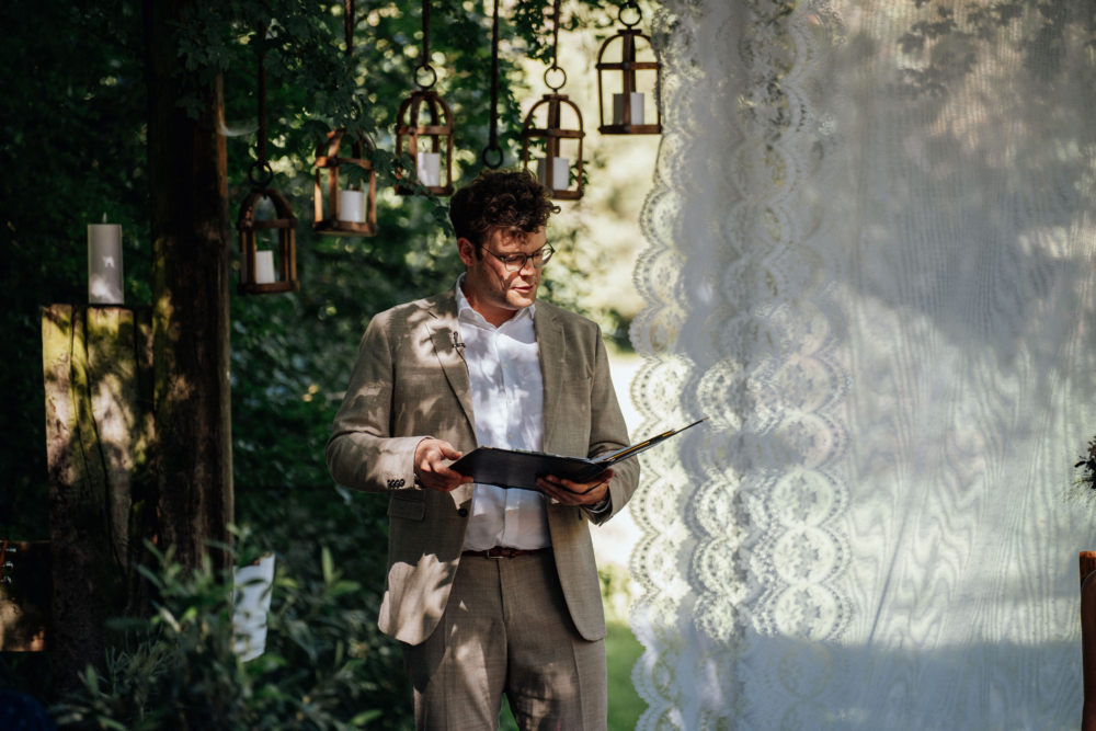 „Eine Trauung darf auch unterhaltsam sein“ – das ist das Credo von Dominik Schulz, Trauredner und Sänger aus der Hansestadt. Er bringt frischen Wind in freie Zeremonien, die oft steif oder austauschbar wirken können. Mit Humor, Gesang und viel Gefühl schafft er einen Auftakt, der bewegt und begeistert. 15 Jahre hat Dominik Schulz zuvor Erfahrung am Theater, als Musical-Darsteller und Comedy-Produzent gesammelt. So besteht keine Gefahr von gelangweilten Gästen und Standardansprachen. Stattdessen kann man sich auf eine Zeremonie freuen, die zum jeweiligen Pärchen passt und alle mit Spaß und Leichtigkeit in die Feier starten lässt.