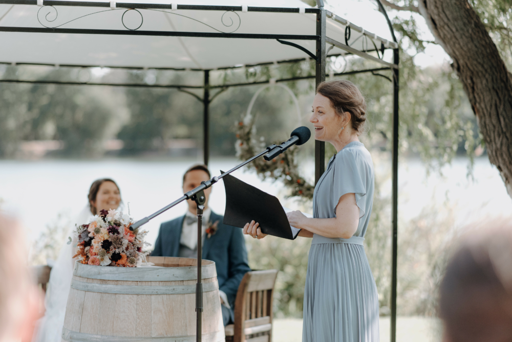 Eine gut erzählte Geschichte macht aus den Ohren Augen – dieses chinesische Sprichwort lebt Alexandra Kampmeier in ihren freien Trauungen. Als professionelle Erzählerin, zertifiziert durch den Verband der Erzählerinnen und Erzähler e. V. (VEE), verleiht sie jeder Zeremonie eine unverwechselbare Note. Mit Herz, Humor und Einfühlungsvermögen spinnt sie aus den Geschichten des Paares berührende Worte, die Bilder entstehen lassen und die Gäste zum Staunen bringen. Auf Wunsch geht dies auch bilingual auf Spanisch oder Englisch.