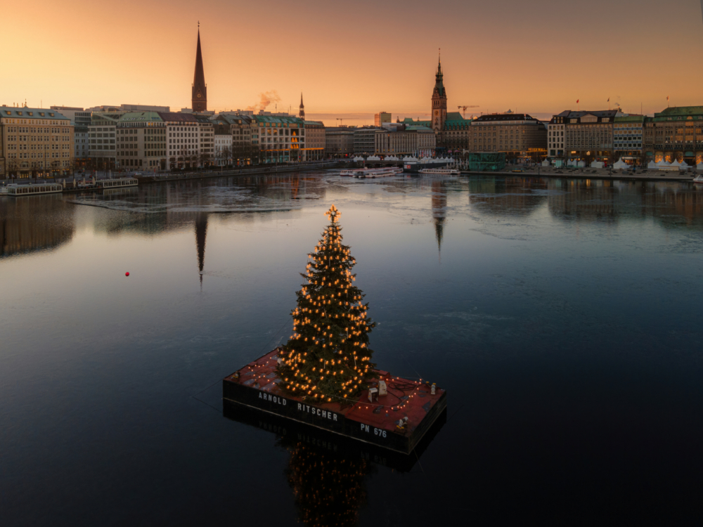 Wer im Winter am Jungfernstieg unterwegs ist, kennt die Alstertanne. Seit nunmehr 20 Jahren wird sie ab dem 26. November auf der Binnenalster aufgestellt und trägt zur weihnachtlichen Atmosphäre bei. Der 16 Meter hohe und 37 Jahre alte Nadelbaum wird täglich von 17 bis 0 Uhr beleuchtet und bietet in dieser Zeit eine stimmungsvolle Kulisse für Besucherinnen und Besucher der Stadt.