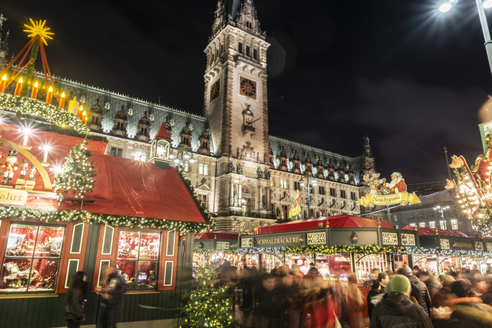 Am Hamburger Rathausmarkt erstrahlt während der Adventszeit die Weihnachtsbeleuchtung des historischen Weihnachtsmarktes, der vom 24. November bis zum 23. Dezember täglich von 11 bis 21 Uhr Menschen anzieht. Ein besonderes Highlight ist der Weihnachtsmann, der mehrmals täglich in seinem Schlitten über den Markt fährt und für leuchtende Augen sorgt. Gleichzeitig setzt der Markt auf Nachhaltigkeit: Stromversorgung erfolgt über Ökostrom und Speisen werden in Mehrwegbehältern angeboten.