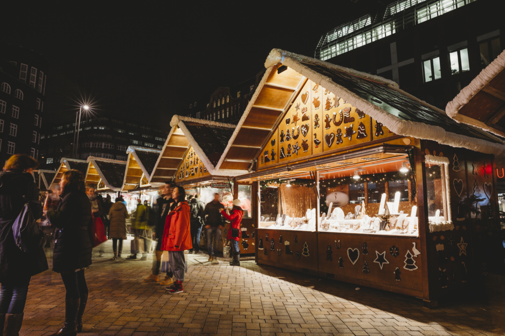 Ab dem 18. November öffnet der Weihnachtsmarkt Weißerzauber am Jungfernstieg seine Tore. Der Weihnachtsmarkt lockt mit seinem besonderen Lichterspiel und der Lage direkt an der Binnenalster jedes Jahr zahlreiche Besucherinnen und Besucher an. Insbesondere der Blick auf die hell erleuchtete Innenstadt und die auf dem Wasser glitzernde Alstertanne ist einen Besuch wert. Ein weiteres Highlight ist das Riesenrad aus dem Jahr 1899 – perfekt für den Blick aus der Vogelperspektive auf das weihnachtliche Hamburg. Neben dem Lichterspektakel können sich Besucherinnen und Besucher an den zahlreichen Ständen unter anderem leckeren Glühwein, Feuerzangenbowle, Bratwurst und gebrannte Mandeln kaufen.